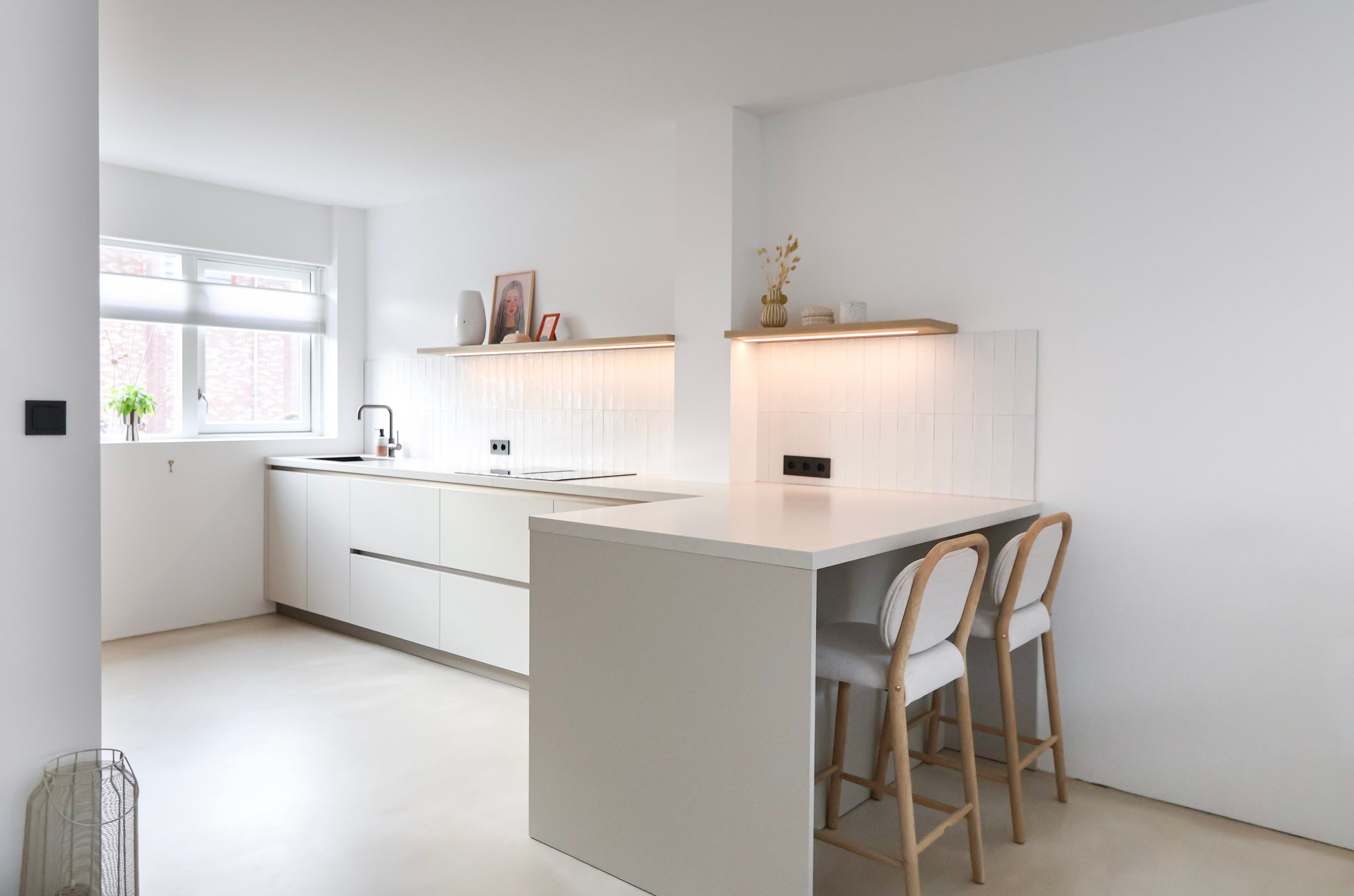In dit project komen Italiaans maatwerk en minimalistisch design perfect samen. De ruimte is voorzien van een gietvloer, die zorgt voor een naadloze, rustige basis met een luxe uitstraling.